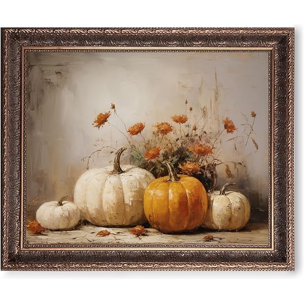 Amazon Com Autumn Pumpkin With Fall Leaves No 19 Wall Art Print 11x14 Unframed Watercolor Home Decoration Picture Perfect For Farmhouse Rustic Vintage Cottage Country Decor Handmade Products